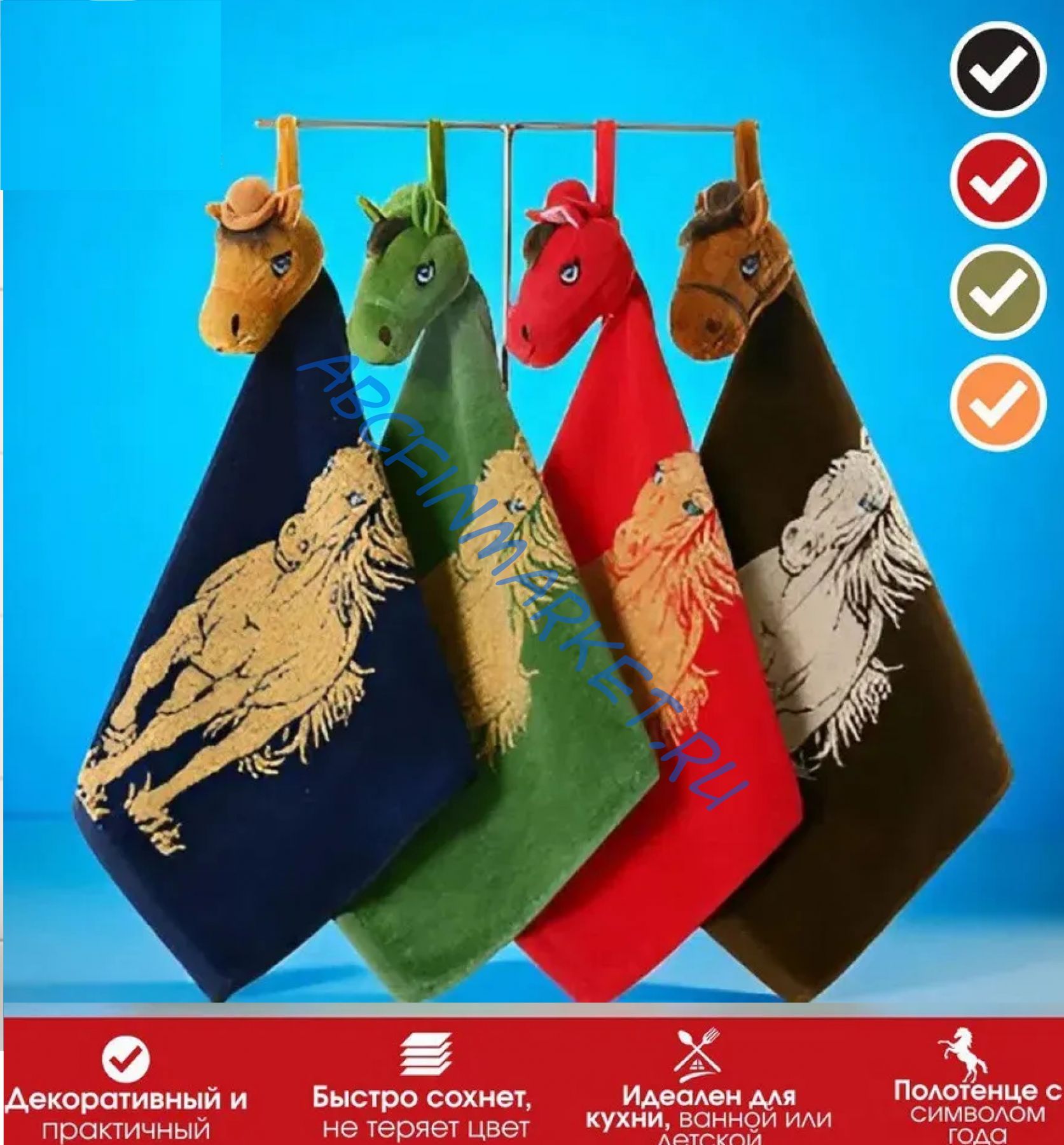 Мы приготовили для вас на следующий год полотенчики отличного качества с головкой лошадки и с изображением Лошадки.